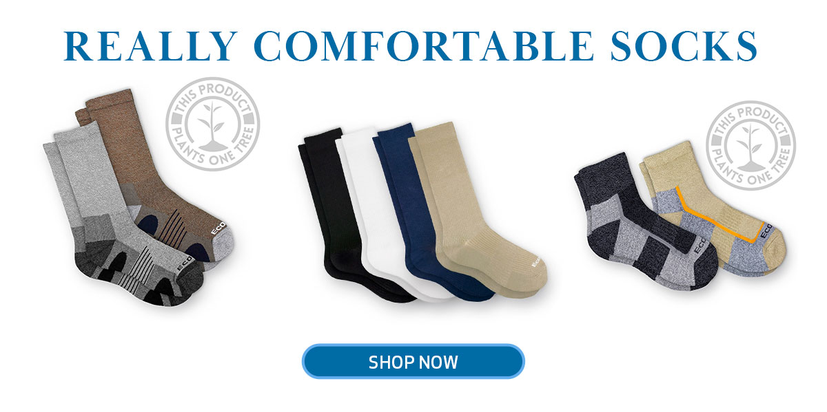 EcoSox has a mild graduated compression (8-15mmHg) bamboo sock that helps improve circulation and reduce symptoms of swelling, tiredness, and achy legs. The naturally absorbent material minimizes infections and blisters, and the smooth integrated toe seam stitching provides comfort and protection for your feet.